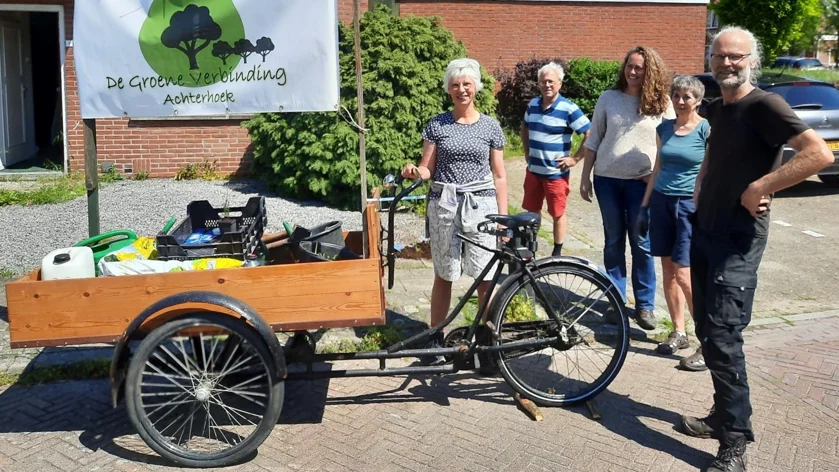 Op zaterdagochtend 13 mei kon u op verschillende plekken in Ruurlo de Groene Verbinding aantreffen. Ze gingen per bakfiets, voorzien van tuinaarde, schep, hark, bezem en natuurlijk een voorraad plantjes, in Ruurlo rond. Waar ze een geschikt plekje zagen in een tuin belden ze aan om te overleggen of ze daar een plantje mochten zetten. Ze zochten vooral betegelde plekken die ze konden voorzien van een fleurig accent dat tegelijk ook waarde voor insecten heeft.