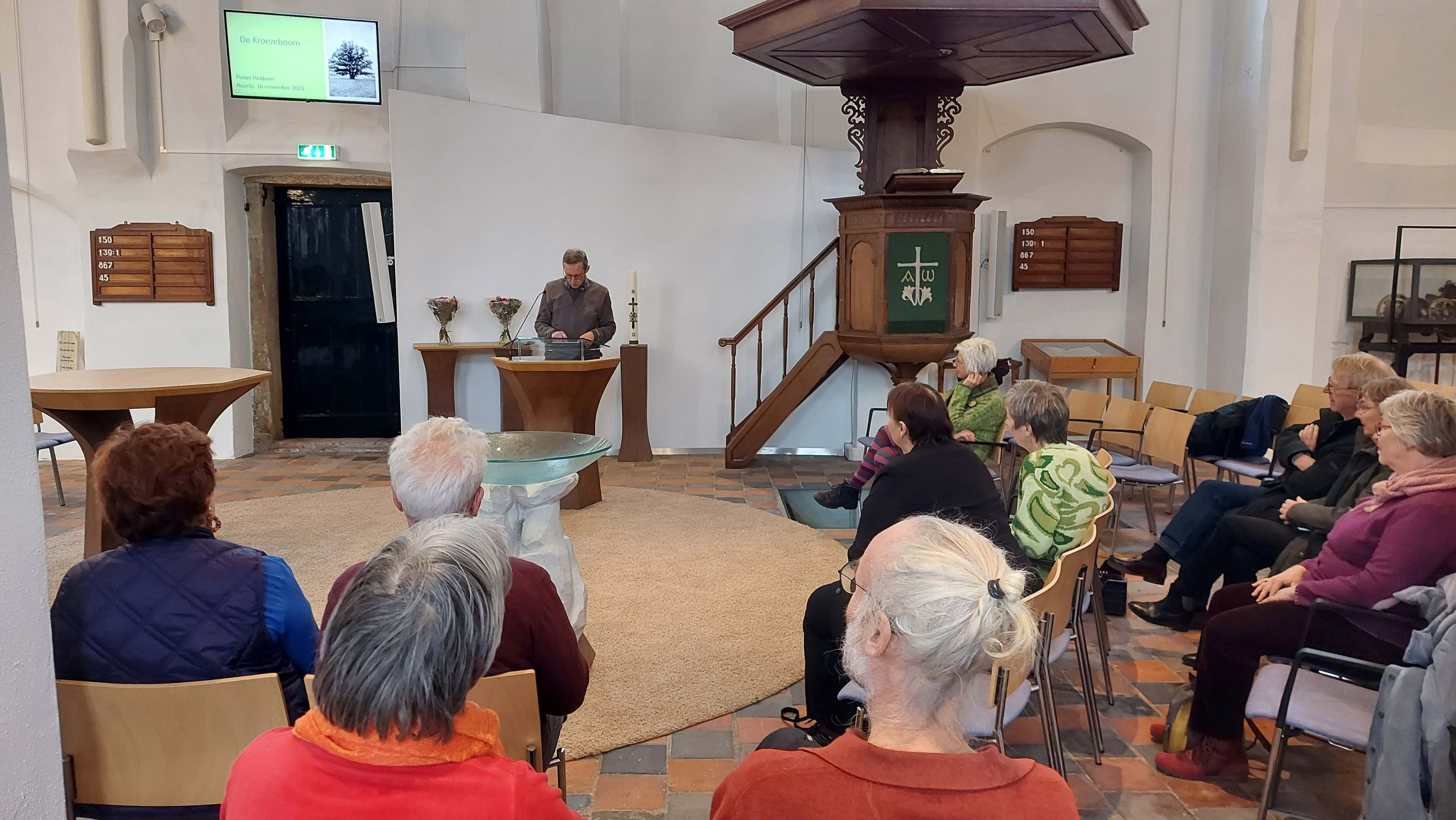 Te gast was dhr. Pieter Heijboer,  de huidige bewoner van de tuin waarin de bekende Ruurlose Kroezeboom staat. Hij heeft de historie van de Kroezeboom toegelicht. En ontving vervolgens de Groene Pluim.
