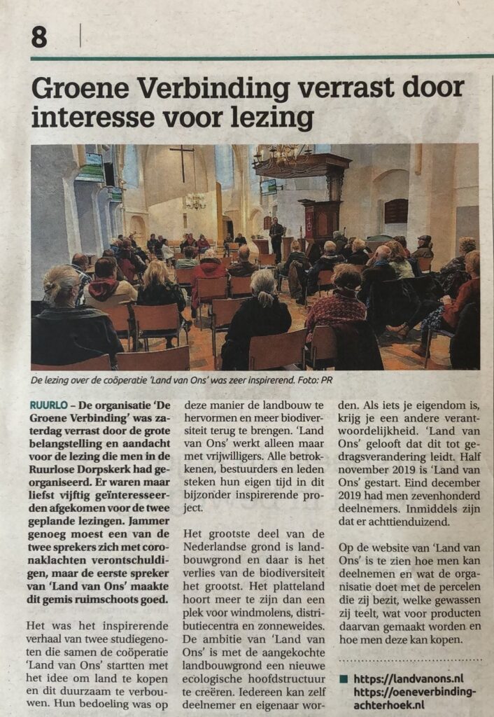 De lezing werd verzorgd door Franke Remerie van burgercoöperatie “Land van Ons”.