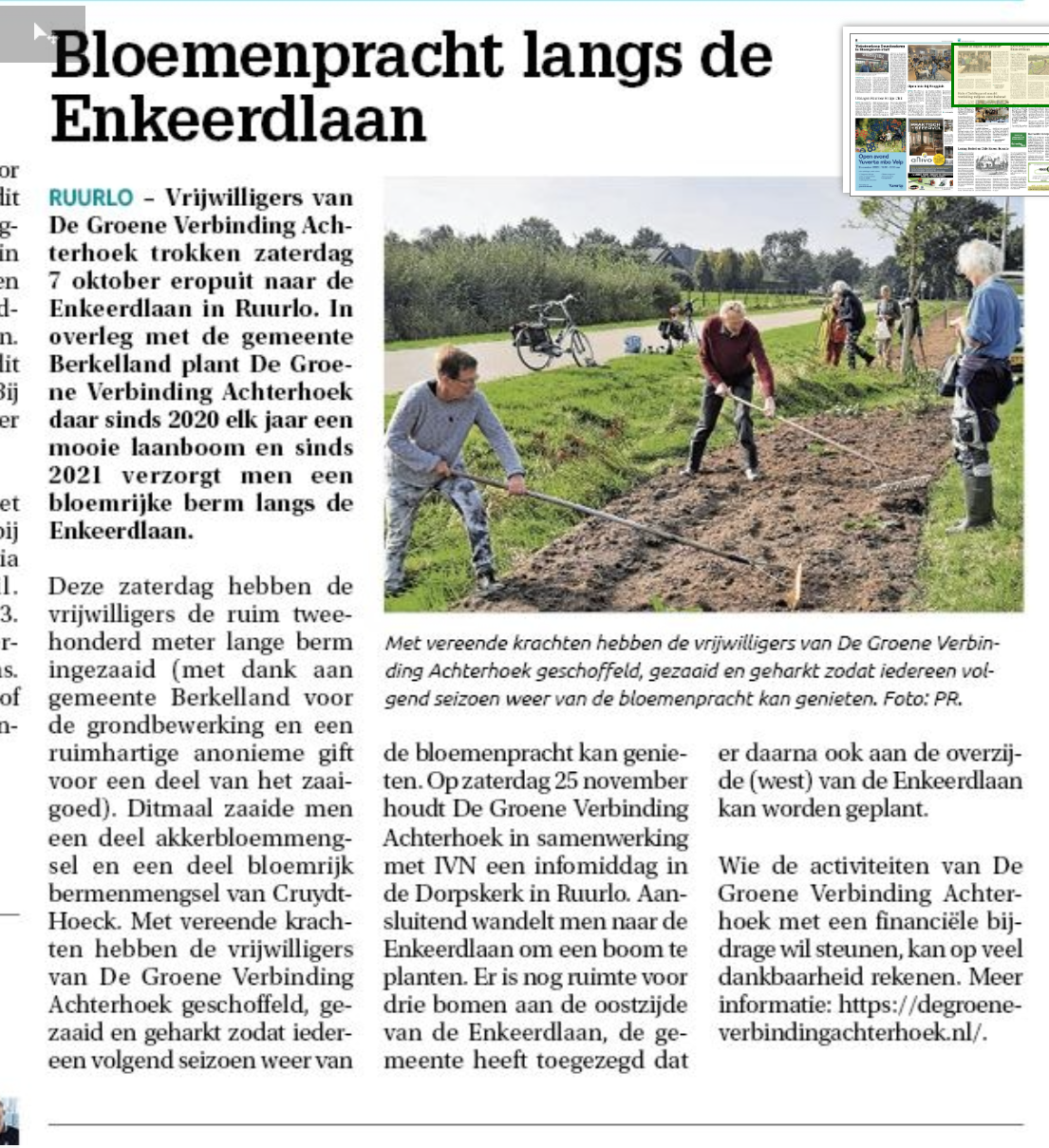 7 oktober 2023: Dit jaar is ervoor gekozen de strook aan de Enkeerdlaan in het najaar in te zaaien in plaats van in mei.