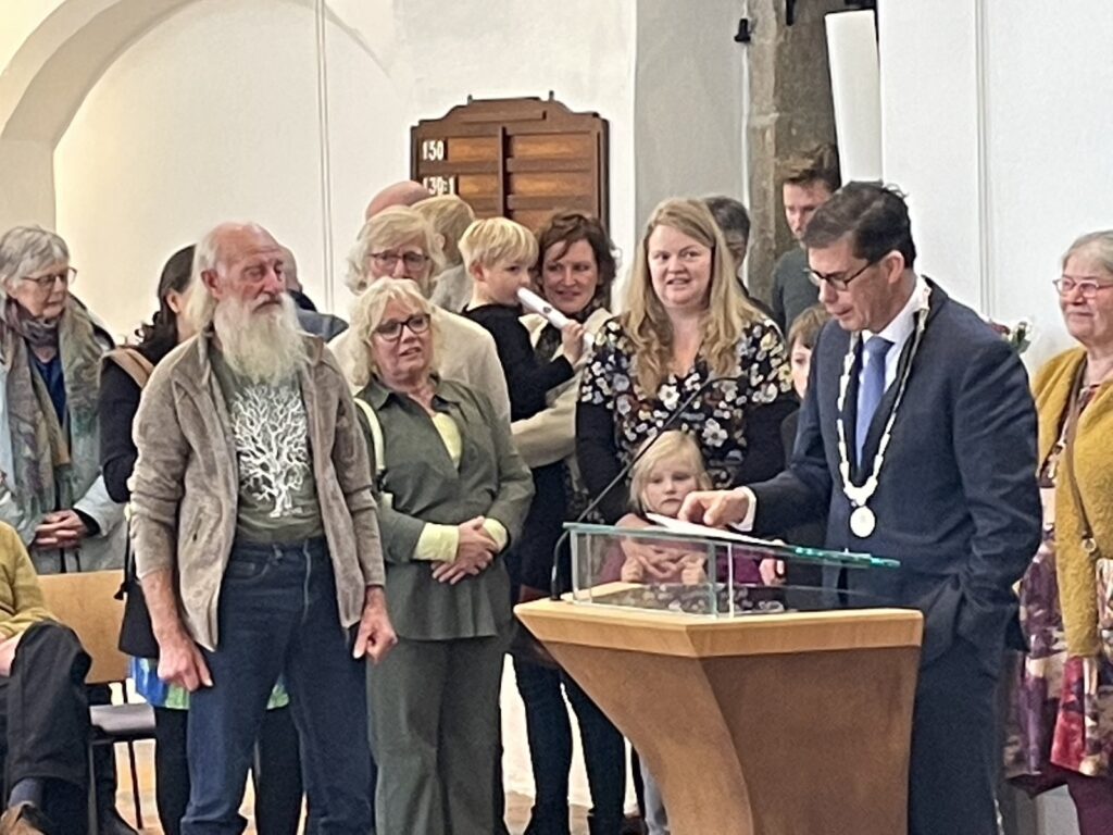 Na de lezingen van de IVN was er een gastspreker van de gemeente aangekondigd. Dit bleek niemand minder te zij dan de burgemeester van Berkelland Joost van Oostrum. Deze begon zijn betoog als bioloog, aansluitend op het verhaal van IVN. Al snel bleek echter dat hij eigenlijk om een andere reden aanwezig was: Het uitreiken van een welverdiend lintje aan veelzijdige groene vrijwilliger uit Ruurlo Sjef Taken.