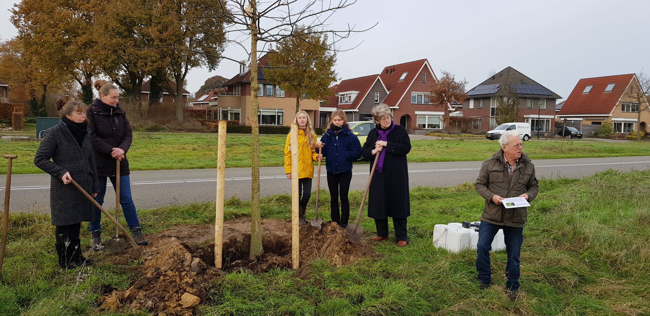 Een inmiddels jaarlijks terugkerende gebeurtenis van De Groene Verbinding is het planten van een boom aan de Enkeerdlaan. Dit jaar werden er twee bomen geplant:
