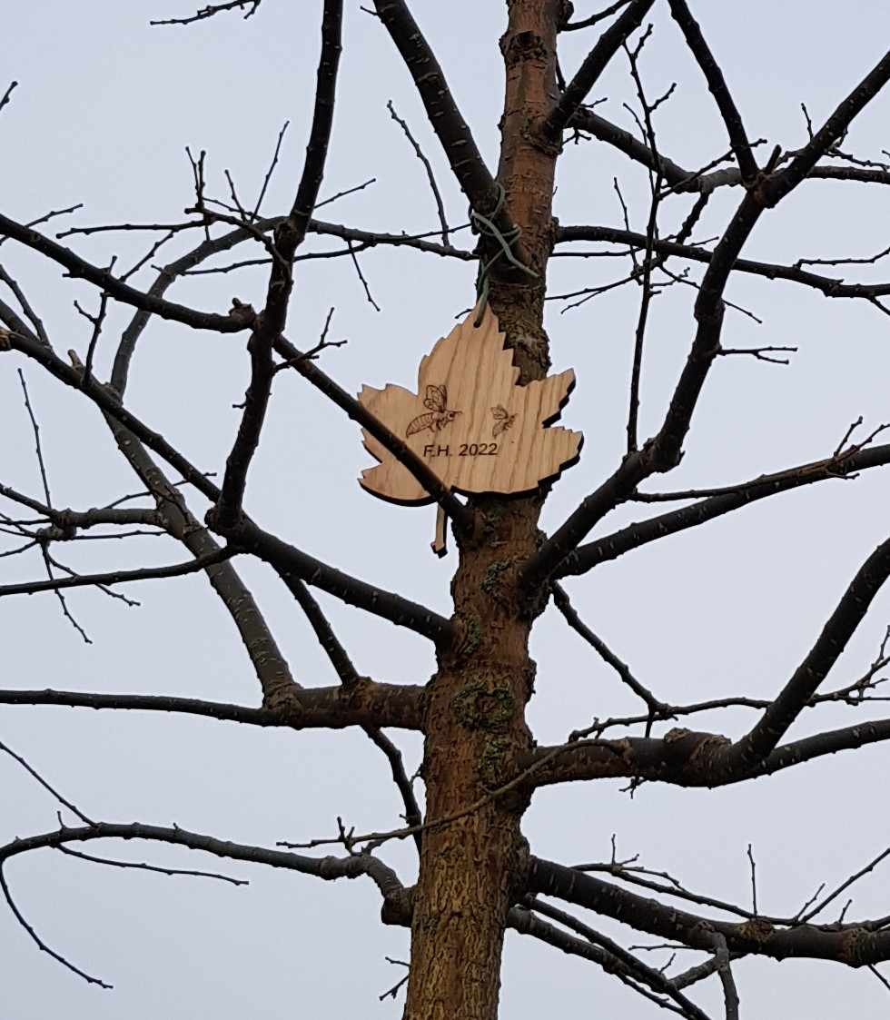 één herinneringsboom voor de onlangs overleden Frans Helmink, door schenkingen mogelijk gemaakt.