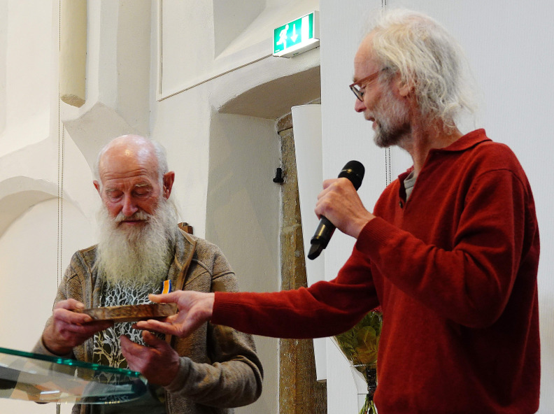 Na de interessante lezing over de Kroezeboom van Ruurlo, die in zijn eigen tuin staat, ontving Pieter Heijboer de Groene Pluim 2024 voor zijn inzet voor het behoud van deze monumentale boom.